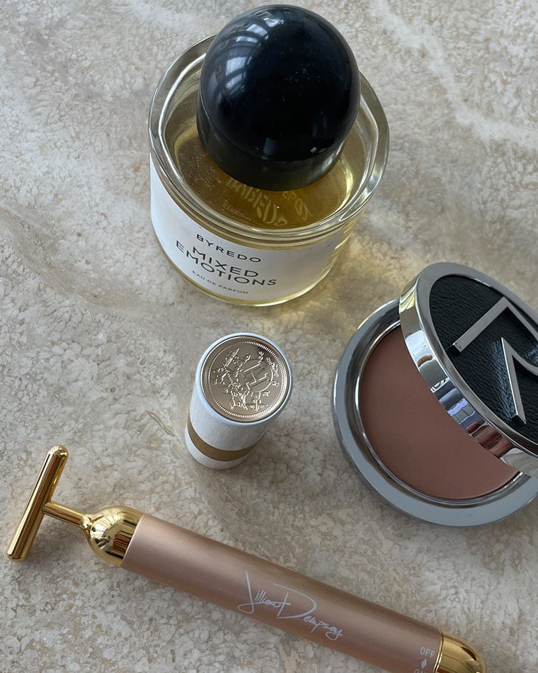 Since then, I’ve loved makeup. I must have been 12 or 13 and, I mean the makeup trends were not good, but we were trying to contour in our own way. Even before contouring was a thing, I used to always put concealer down the center of my nose and lighten up under my eyes. By the time I was 19 I had that Tom Ford Illuminating Powder Duo, which I would use to contour. I was always trying to experiment with sculpting my face, but I was terrible with skincare. So I was a bar of soap kind of girl and that was how I was taking off my makeup—I was scrubbing soap into my mascara to get it all off. It was only when I was about 21 I went for a very fancy at Claridge’s and they used Sisley products on me and recommended me to get this Sisley skincare and it completely transformed my breakouts, which I had really badly at the time. And from there I was like oh, OK, I need to look after my skin now.
