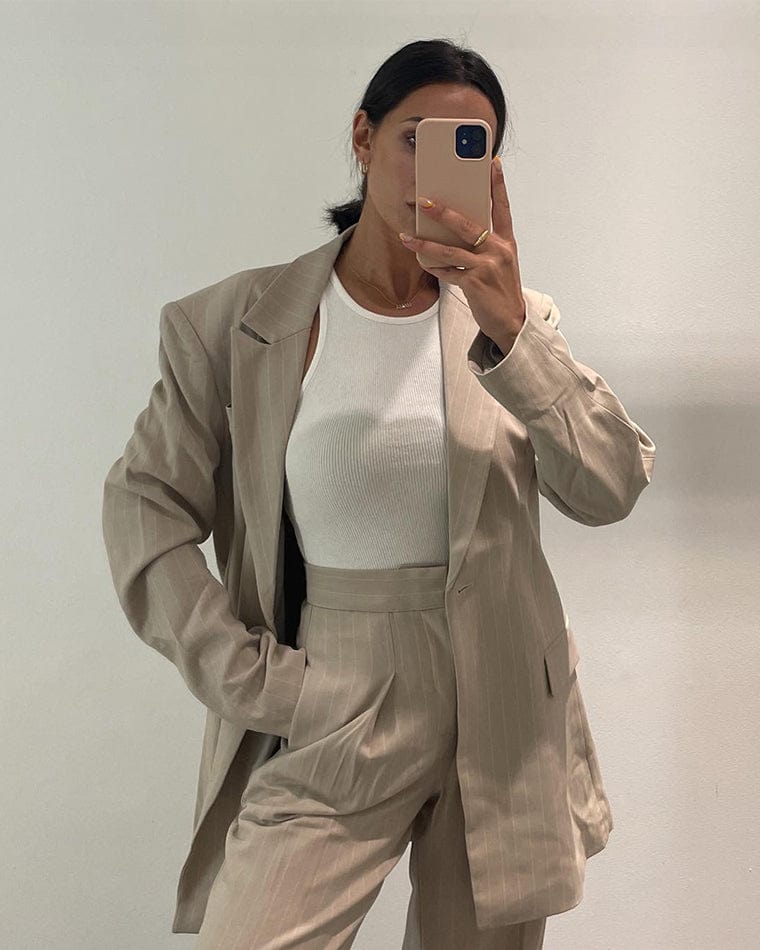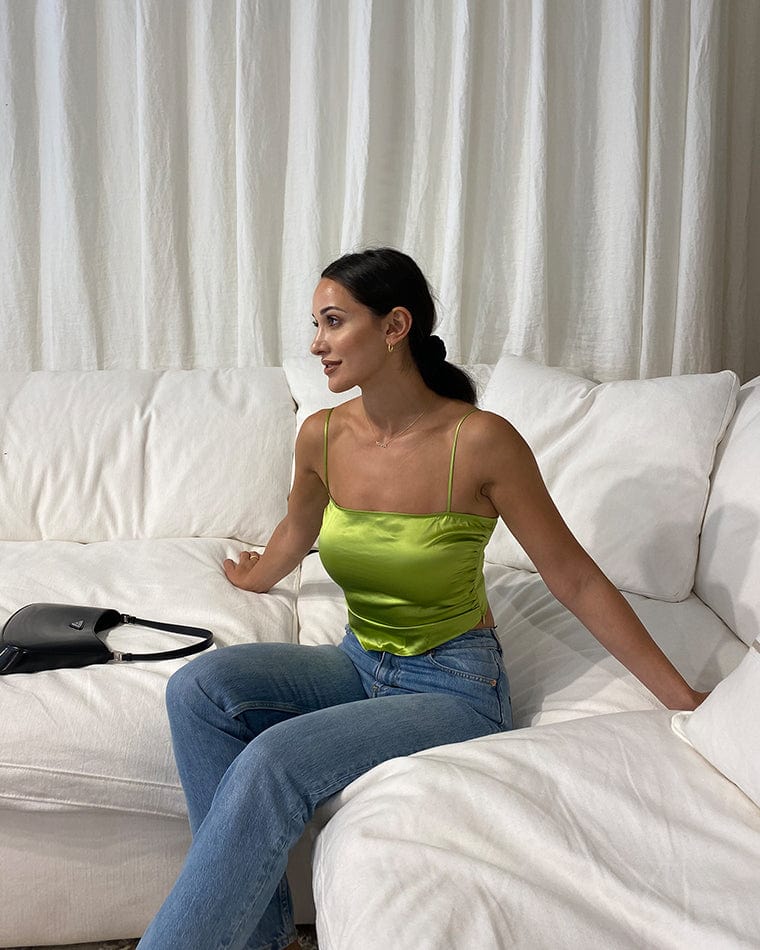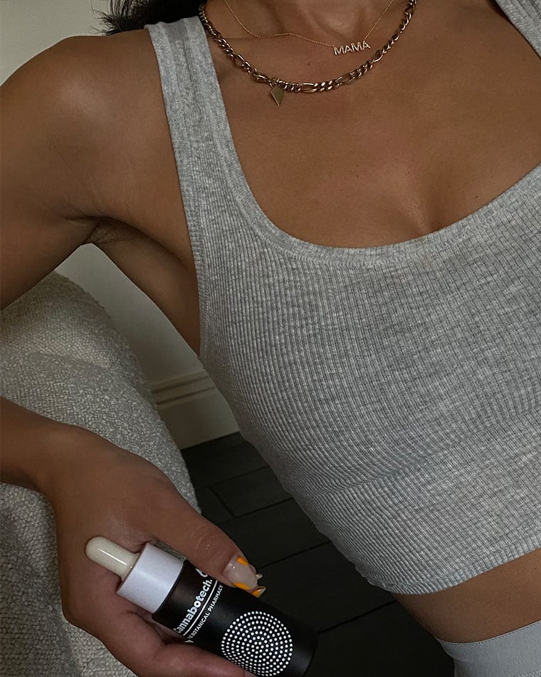 I got a bit overexcited over lockdown doing lots of at-home facials and I actually took a bit too far. Because I get lots of products to try, I have tried loads and I definitely think I've found my perfect skincare routine. I would start by saying less is more and simplifying things has been amazing for me. I start with a cleanser. At the moment I use Murad AHA Exfoliating Cleanser and I've found that AHA is really good for keeping my breakouts at bay. Then I use a hyaluronic acid serum. I use Organic Pharmacy, but when I started using hyaluronic acid my skin changed. The glow was real and I had found that things like vitamin C and retinol didn't really agree with me. Since I had Wolf, my skin is much more sensitive. So I have my serum and then I use Clinique Moisture Surge religiously. I've been using it for 10 years. I have tried so many moisturizers and every time, I go back to it and I have been through about 25 or 30 pots, easy. It just really works for me. I found out only recently, I don't know why I never even looked at the ingredients, but it does have hyaluronic acid in it. So maybe that's why my skin likes it. And then I use the Malin+Goetz Acne Nighttime Treatment for breakouts. So that's my basic skincare routine. It's so simple. I also love a good sheet mask and using any cooling de-puffers. I put on the sheet mask and rub my cooling cryo things over it and it's heaven. I also get regular facials.