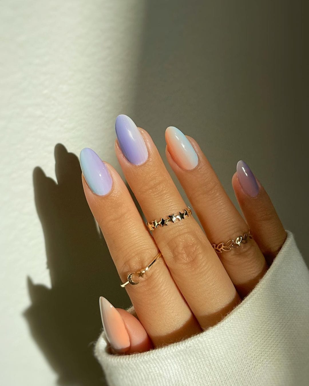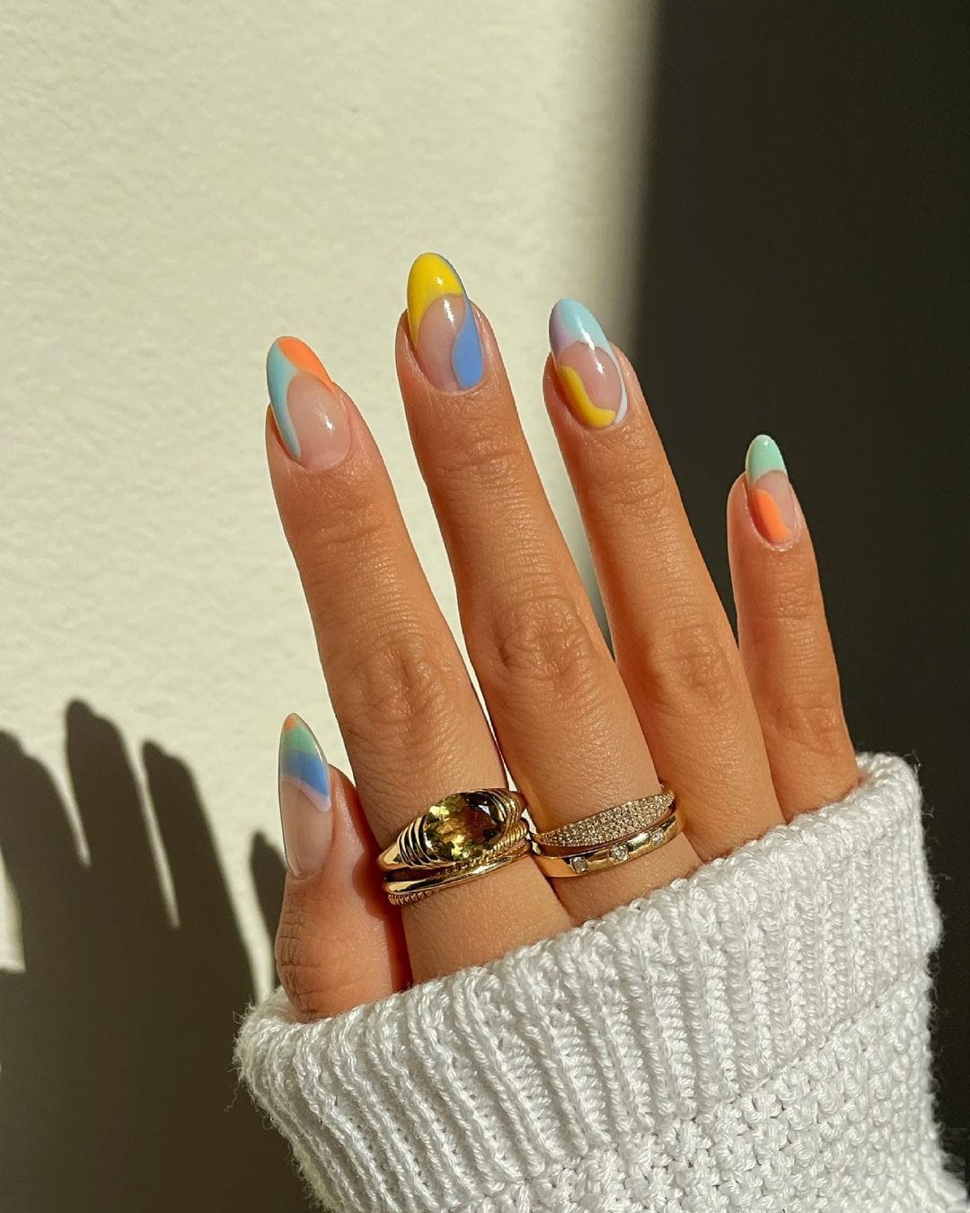 Those with a pack of brushes can level up with this look. "Pick as many colors as you want and fill in random sections on your nails,” she says. "You really can't mess this up.”