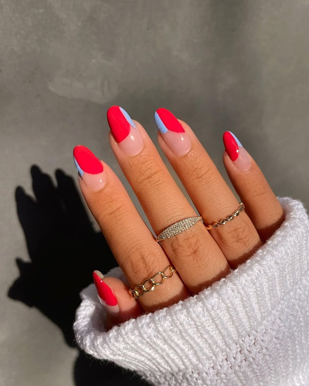 No tools, no problem. "No nail art brushes necessary!" Le says. These negative-space swoops are truly foolproof because you can shape them however you want, just start with your lighter color to ensure each coat of color dries so the second color goes on smoothly.