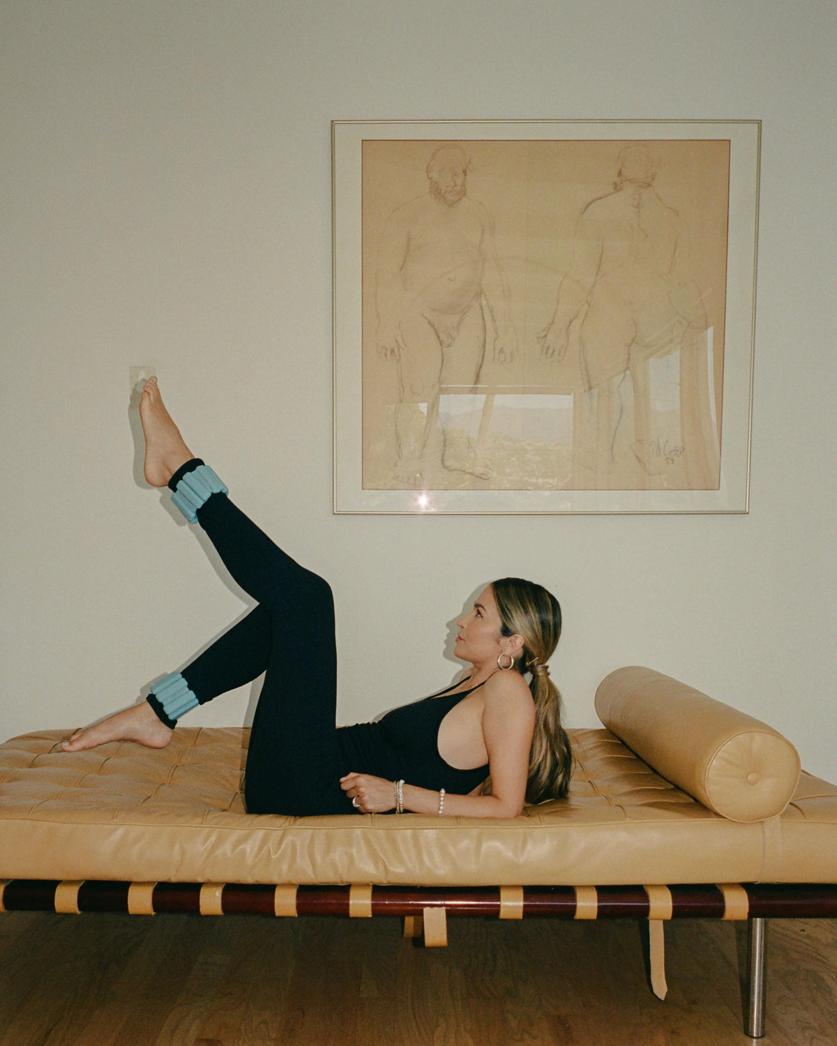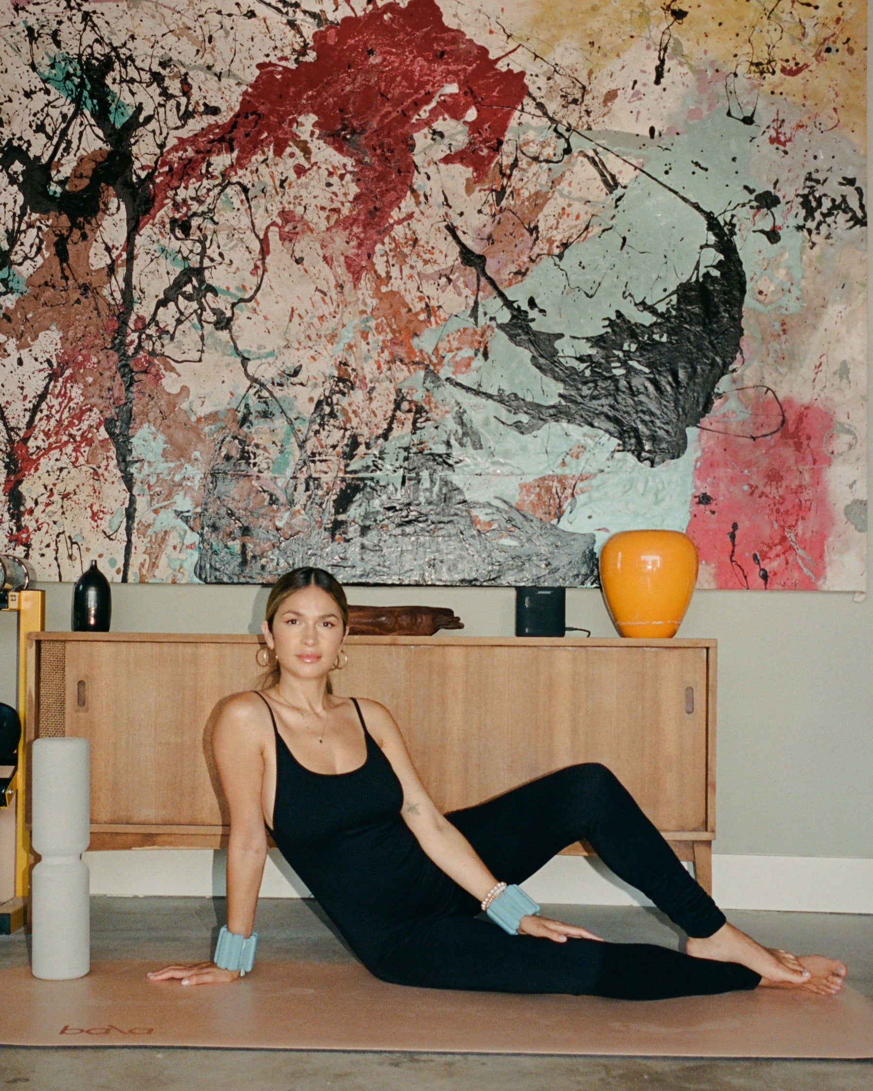 Bala co-founder Natalie Holloway believes fitness should be fun and approachable. Wearing the brand’s signature ankle and wrist weights for yoga or walking her dog are just some of the ways Holloway gets her workouts in during the day, and a go-to playlist helps sustain the good vibes along the way.